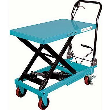 Heavy-Duty Hydraulic Scissor Lift Table helps workers to easily move and position loads at a convenient working height. Heavy-duty construction with captured scissor rollers for maximum stability. Superior hydraulic system features an integrated pump-cylinder for maximum reliability. High quality casters and wheels for exceptional maneuverability (two fixed, two swivel)