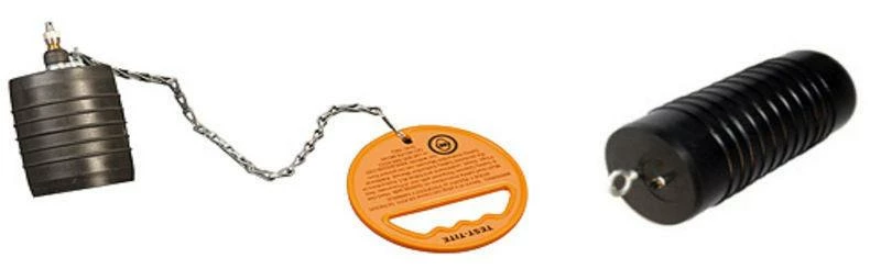 Manufactured from a durable natural rubber. Conforms to irregular pipe shapes to seal effectively. Plugs sized 6″ and under come with a 12″ chain and a ring assembly attached to a molded inflation valve. Larger plugs come with a replaceable tank valve and an eye-bolt for tethering. A metal cap/core tool is also included.