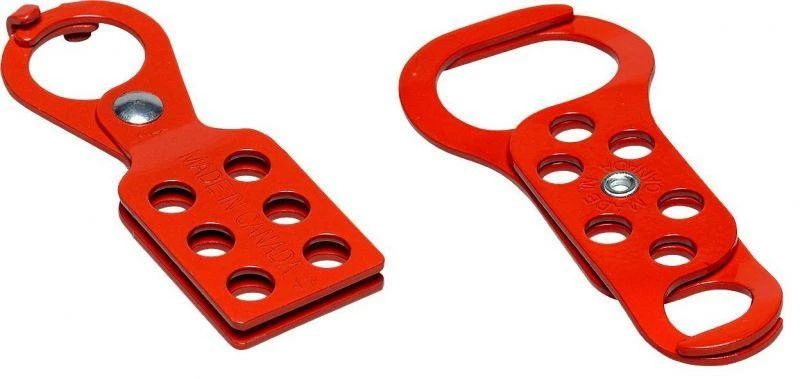 Lockout hasps offer locking control for machinery or electrical power sources while maintenance or repairs are being done. Accomodates padlock shackles up to 3/8″ diameter.