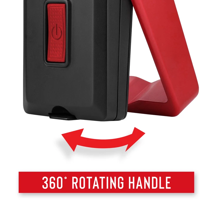 The light’s smooth-ratcheting magnetic handle swings on a 360-degree arc around its body so that you can set it up just right for the work at hand—whether by holding it, hanging it, sticking it to a metallic surface, or standing it up. Combined with the 180-degree-rotating PURE BEAM® optic, the positioning features create truly versatile lighting with seamless transitions between Ultra View Flood Beam and BULLS-EYE™ Spot Beam—at up to 500 lumens with a max run time of 45 hours.