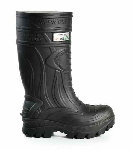 Cofra’s Thermic Black Winter Safety Boots are made of Cofra’s Cold Defender Polyurethane material, which is resistant to temperatures as cold as -25°C (-13°F). Features a non-metallic (metal-free) safety toe and plate for lightweight performance.
