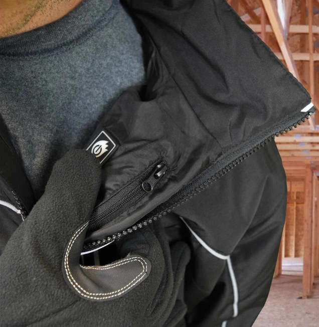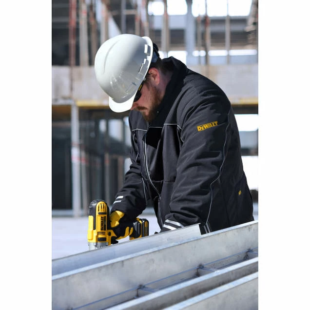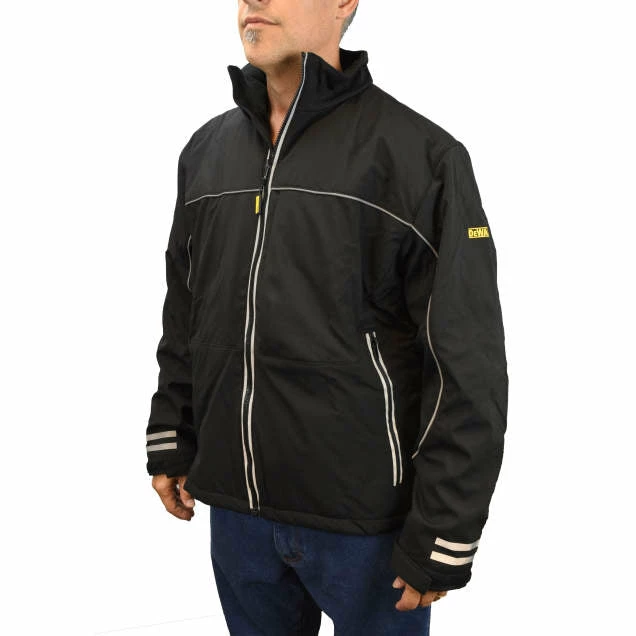 Lightweight Soft Shell Jacket with Reflective accents makes working and living in the cold stylish, visible and WARM! The DEWALT® DCHJ072B Heated Coat provides hours of core body warmth and continuous heat. This jacket features 3 Core Heating Zones and 3 temperatures. Lightweight and Insulated Water and Wind resistant outer shell combined with a warm Fleece lining makes this super comfortable and easy to wear. This is a “Bare” item meaning it comes with the DCB092 adapter and can be used with your DEWALT® 20V battery. The USB power adapter can be used to charge your portable accessories.