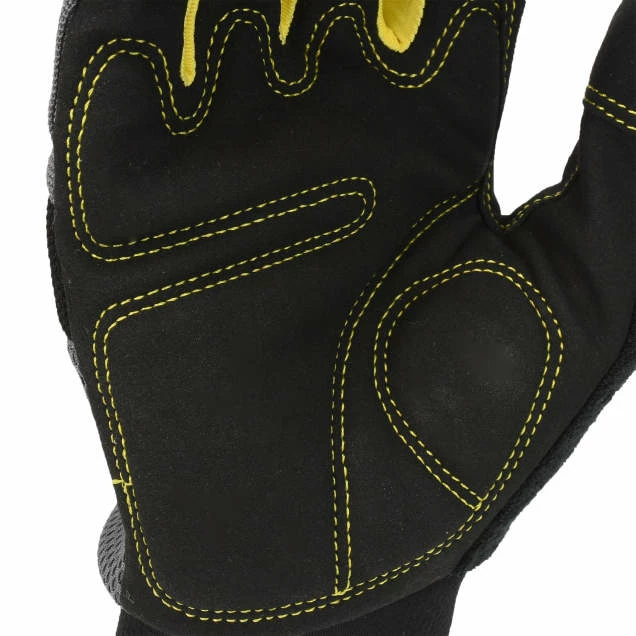 The DEWALT DPG211 Foam Padded Performance Glove protects against hand fatigue when working on jobs such as machinery repair, wooden structure installation, or digging through gravel and rock. Foam padding on palms and knuckles cushions hands from tool use, while synthetic leather fingertip overlays provide a strong grip and abrasion resistance. Double stitching and thumb saddle provides added durability.