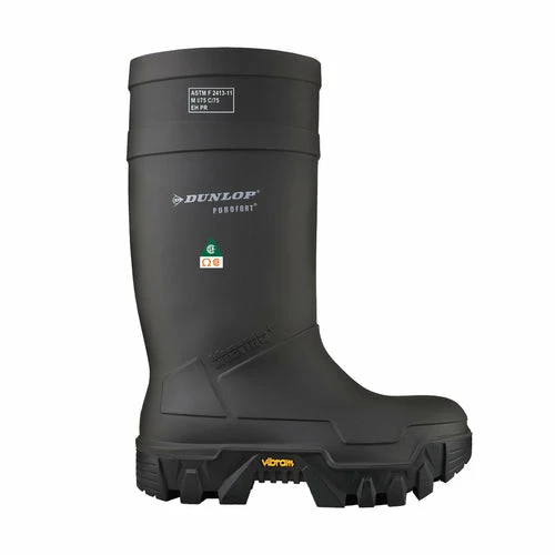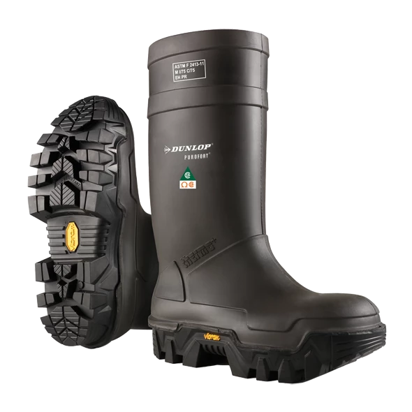 Dunlop’s Explorer Thermo+ boot is warmer, lighter and longer wearing than traditional rubber boots. The Purofort PU upper is both oil and seawater resistant, staying flexible even at very low temperatures. Outsole is durable Vibram FIRE & ICE – designed to maintain its performance values in a wide range of temperatures. Featuring CSA Grade 1 steel toes and plates, these boots are also electric shock resistant (ESR). Other features include: