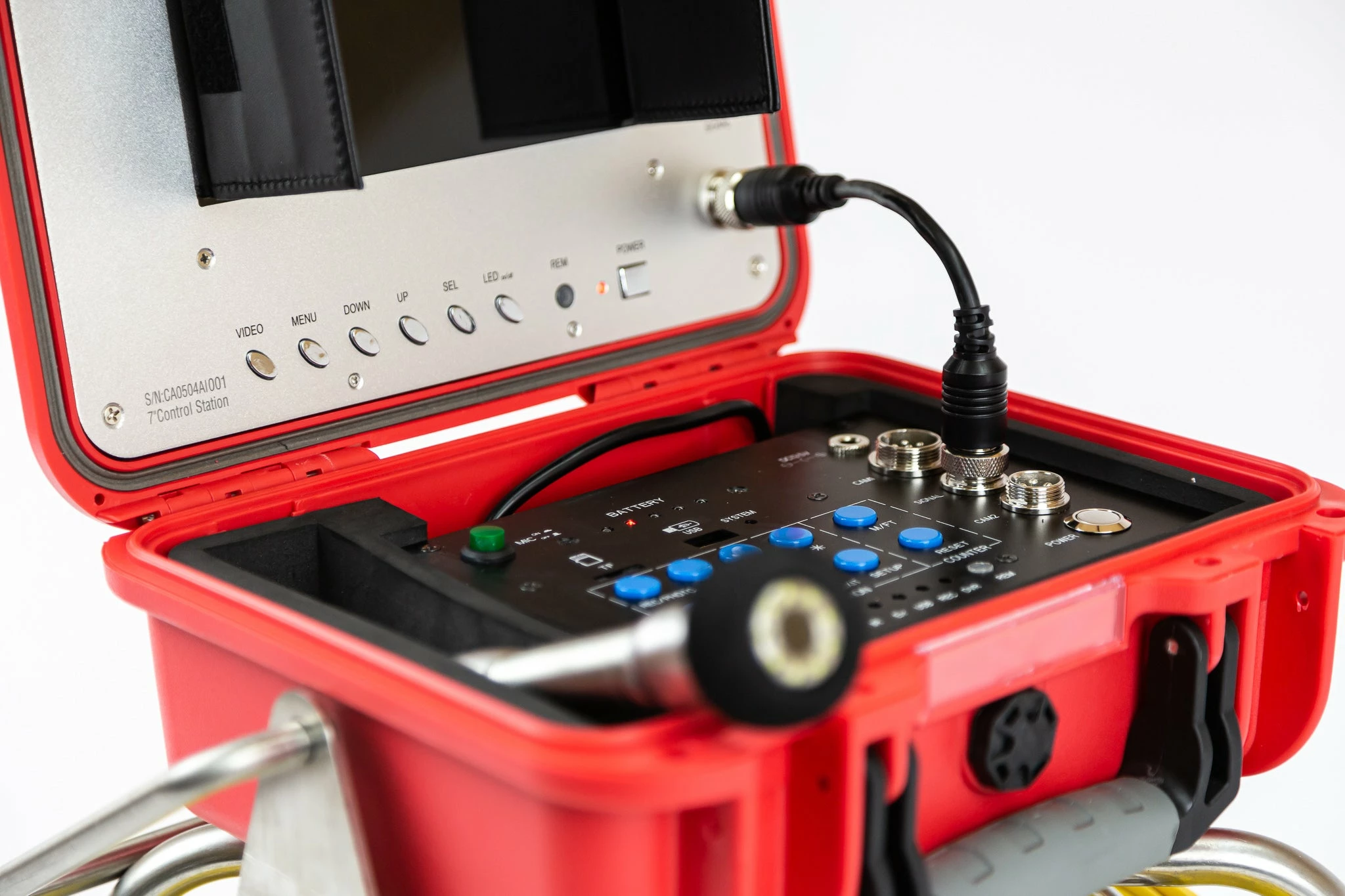 • 1” Self Leveling Colour Camera Head w/LED Lights, Comes with Interchangeable skids for traversing through different pipes