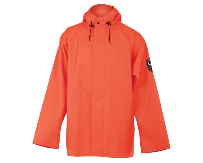 Stay dry on rainy days at the jobsite in this waterproof jacket. The PU shell features a comfortably loose fit and double storm flaps to prevent moisture from seeping in through the zipper. The three-panel hood has a draw cord with cord locks to pull it snug around your head, sealing out cold air.