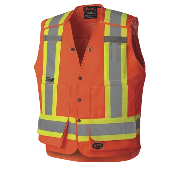 Hi-Vis Work Wear Pioneer Hi Viz Drop Shoulder Poly/Cotton Tear-Away Surveyor’s Safety Vest | Sizes Small – 4XL