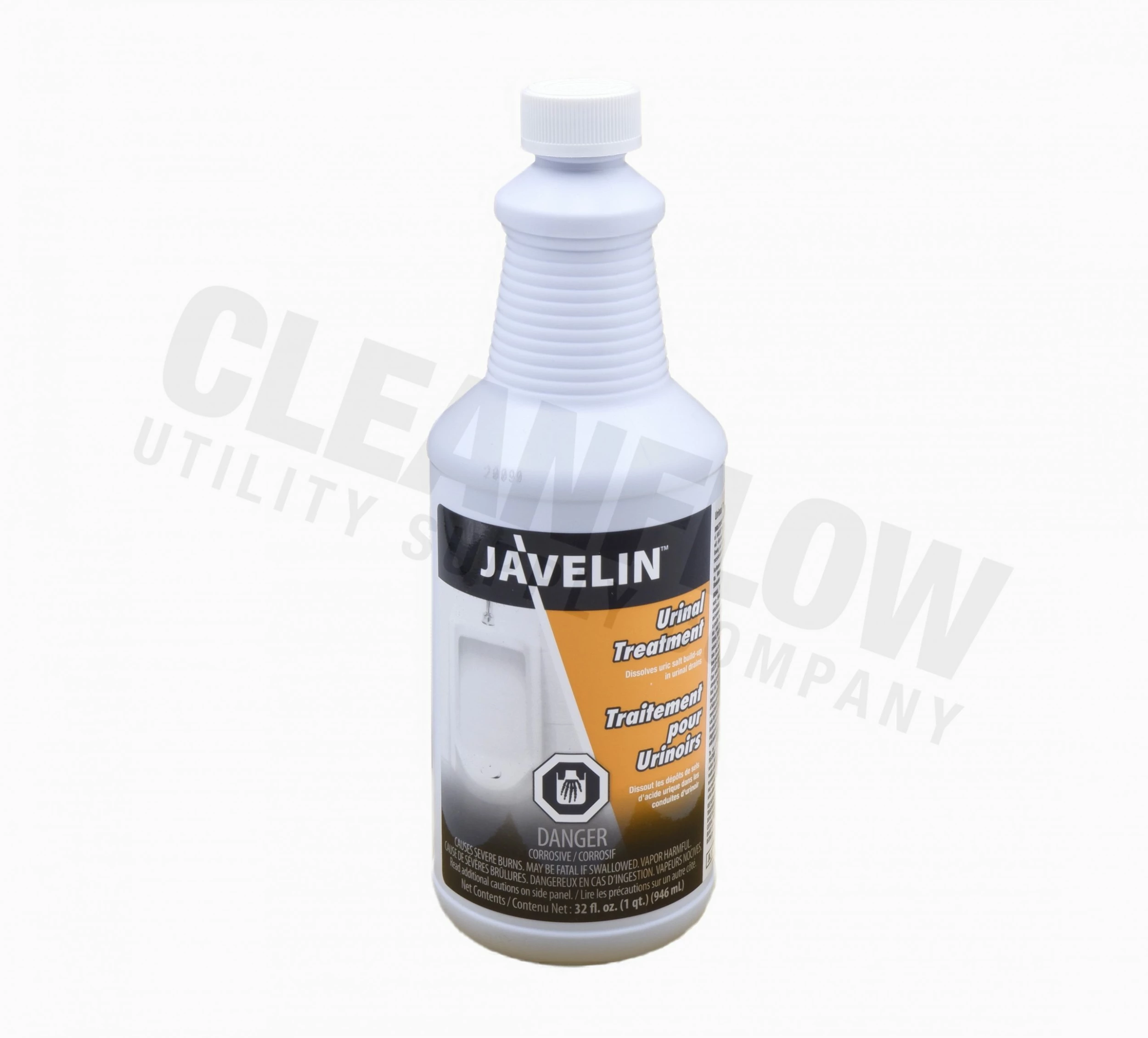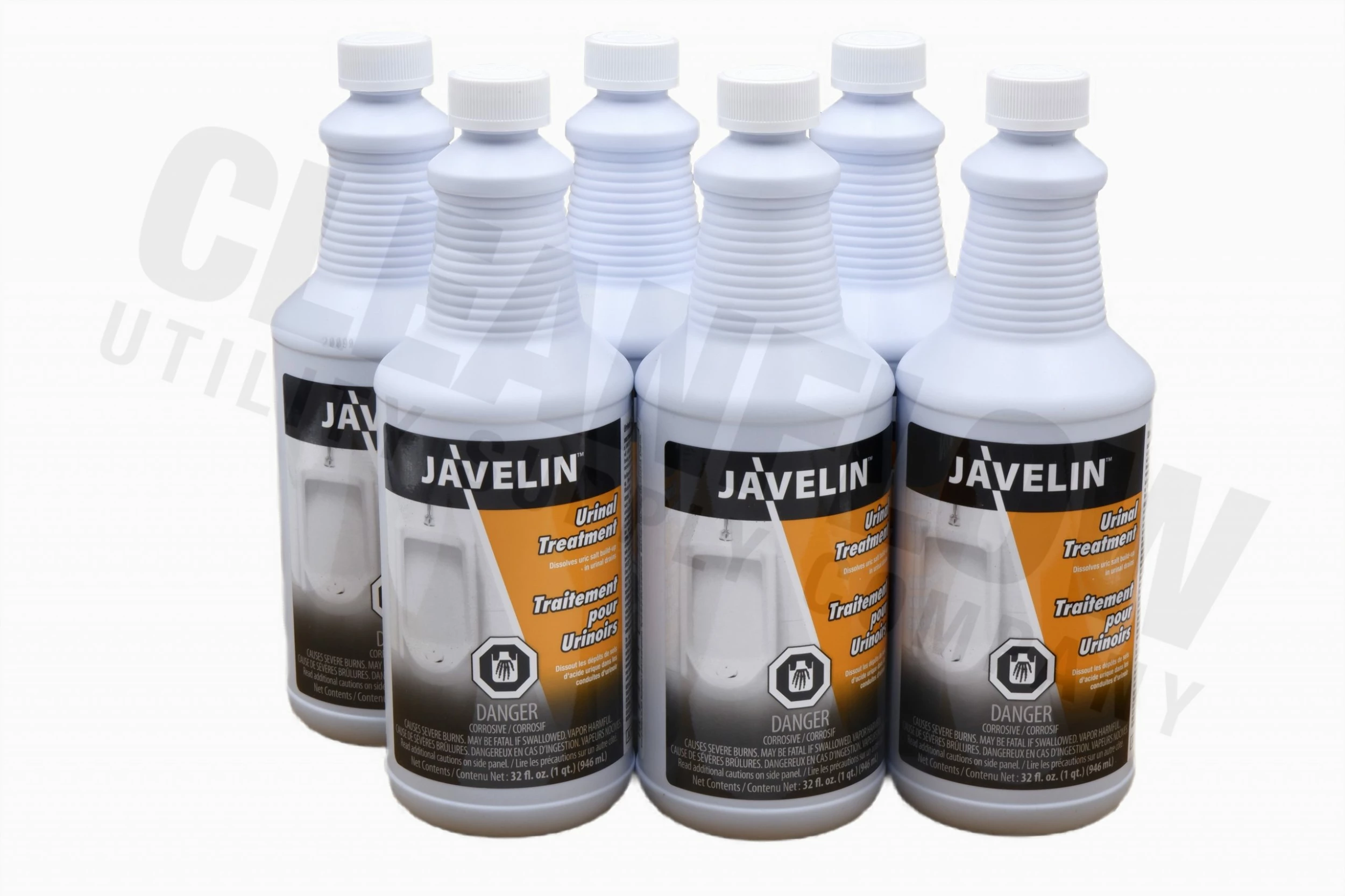 Javelin Urinal Treatment is a drain opener and maintainer designed to tackle urinal drain blockages and restrictions. Urinal drains are subject to repeated build-ups on uric salt which form hard and difficult to remove deposits inside drain lines, which result in blockages and foul odors. Javelin Urinal Treatment dissolves the uric salt build-up, eliminating the time consuming work of mechanically removing these deposits, keeping urinal drains open and eliminating nasty odors.