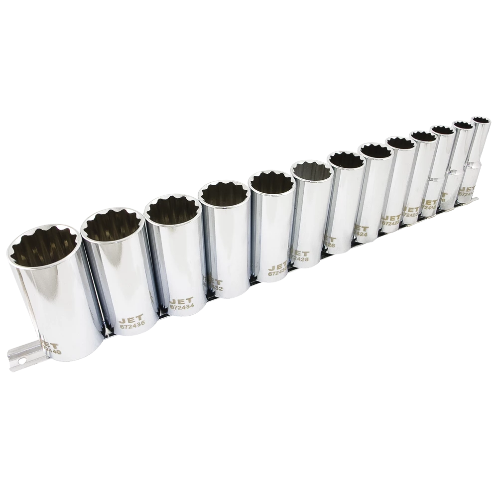 Jet 1/2″ Drive SAE Chrome Socket Set – 12 Point – 13 Piece – DEEP Hand Tools