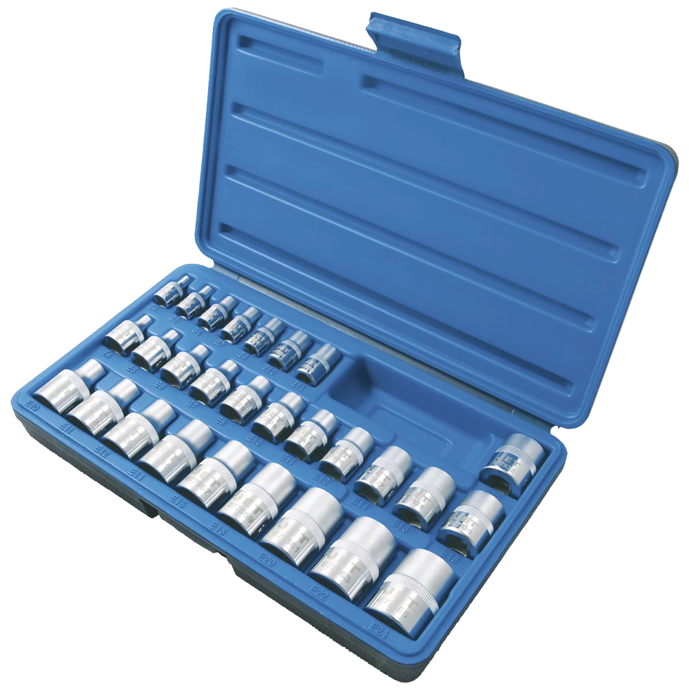 Jet 1/4″, 3/8″ & 1/2″ Drive Chrome Socket Set | External Torx | 28 Piece