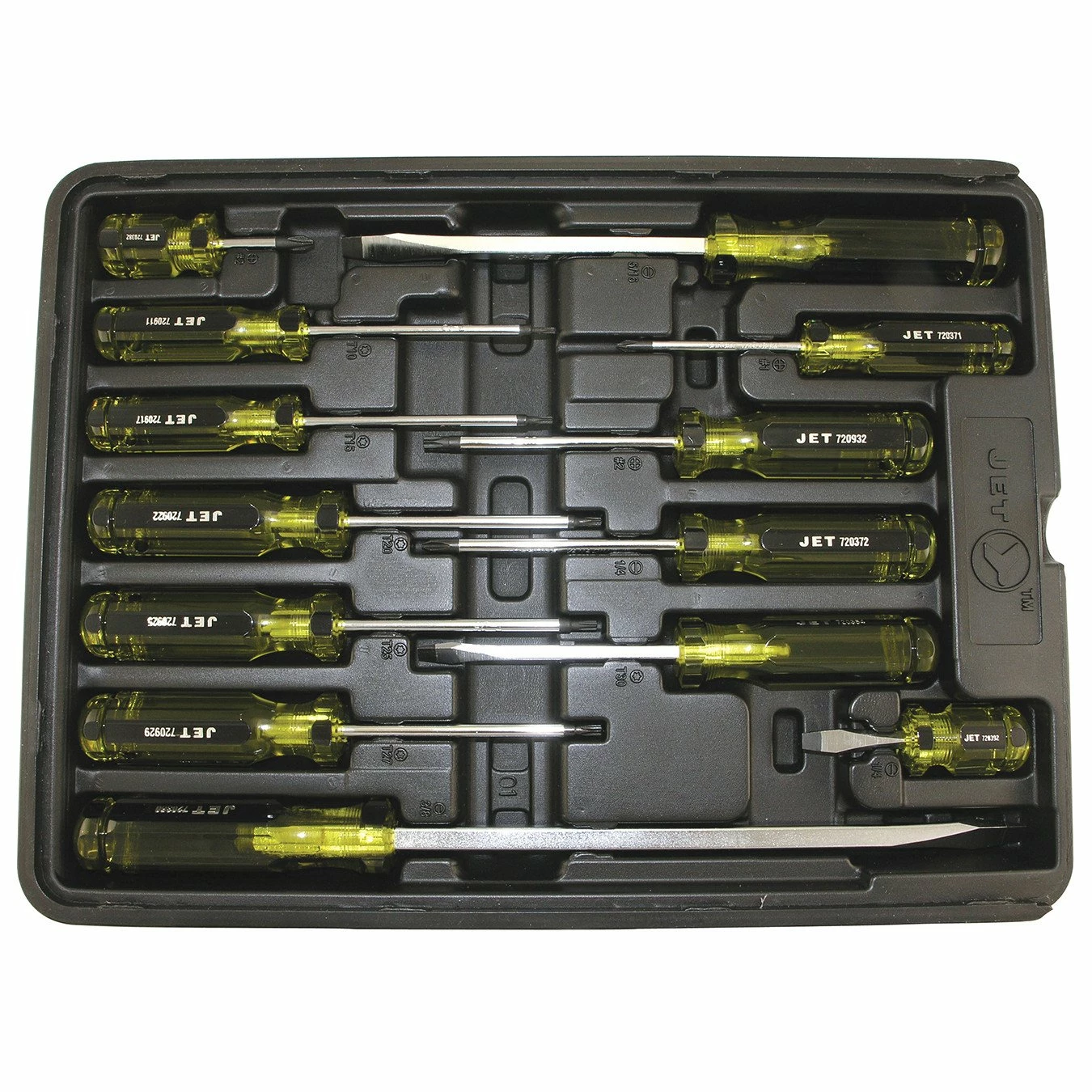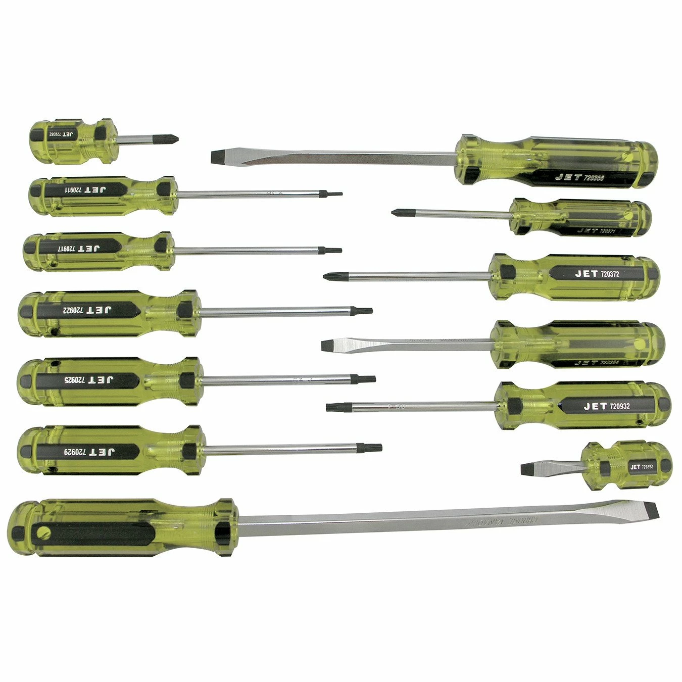 Jumbo grip grooved handle design is made with virtually indestructible super acetates. Shafts made of the highest quality Chrome Vanadium steel for long life and maximum durability.This set is supplied in a convenient blow mold tool tray.