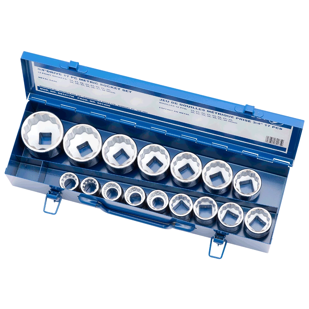 Jet 3/4″ Drive Metric Chrome Socket Set – 12 Point – 17 Piece Hand Tools