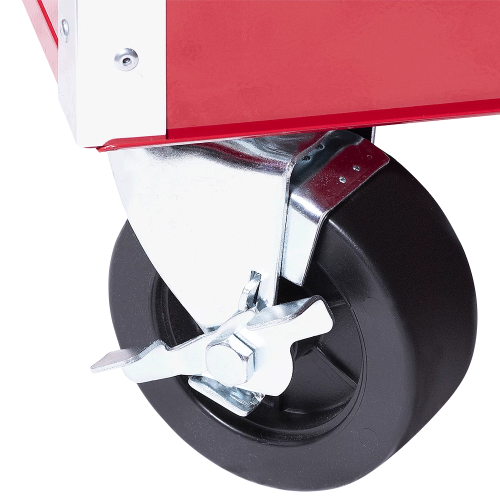 - Heavy duty casters with pedal brake.