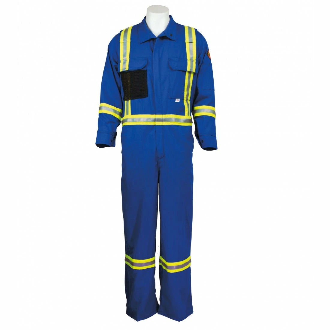 REFLECTIVE: 3M™ SCOTCHLITE™ SILVER REFLECTIVE MATERIAL ¾ INCHES STITCHED ON 2” ENHANCED VISIBILITY TRIM: 2 VERTICAL ON FRONT (FROM SHOULDER TO WAIST), “X” ON THE BACK THAT MEET AT SHOULDER, ALL AROUND WAIST AND 1 HORIZONTAL STRIPE ON EACH ARM AND LEG.