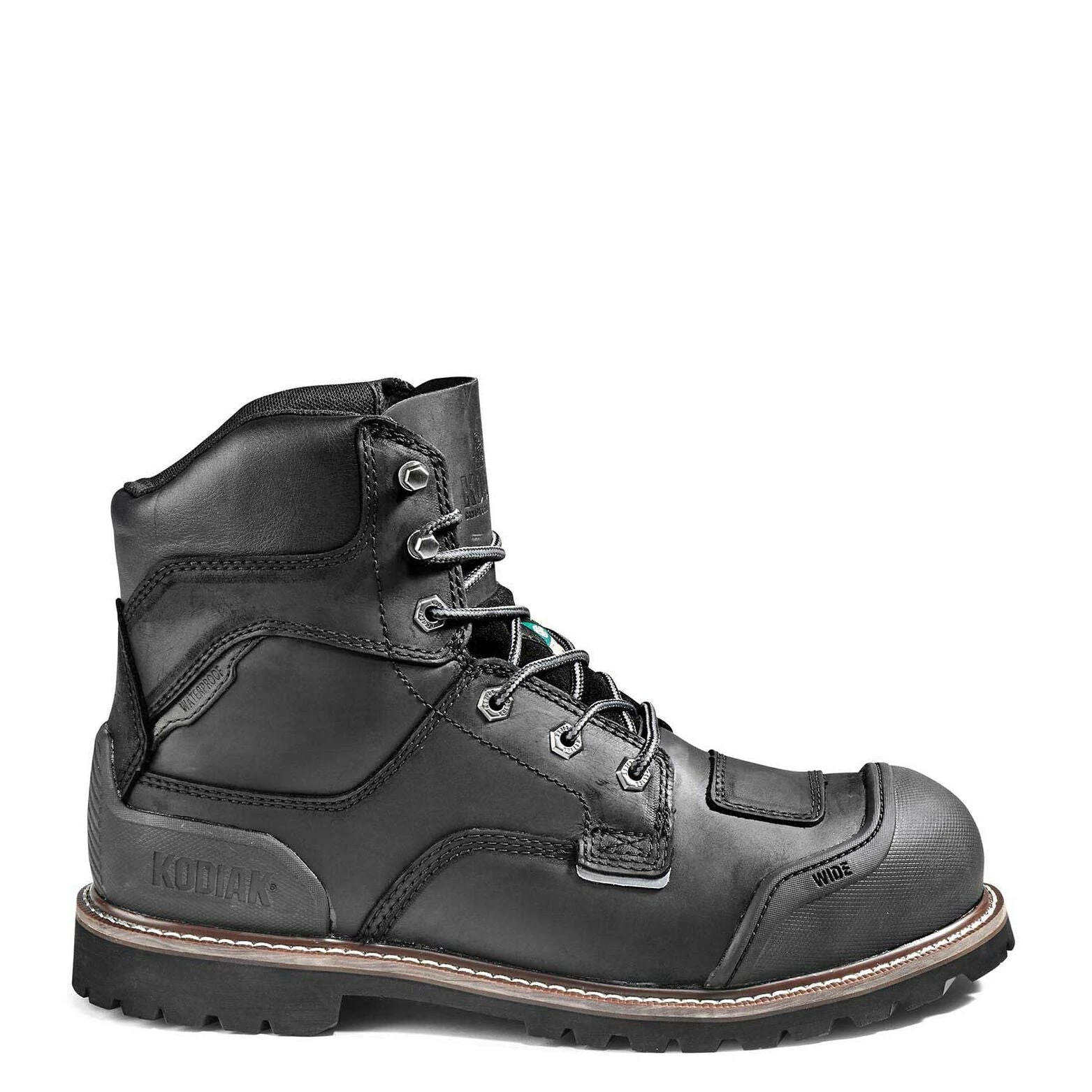 Work doesn’t stop for rough weather or harsh conditions, which is why Kodiak made the extra-wide Widebody six-inch work boot 100% waterproof, reinforced with rubber toe- and heel-guards, and packing the protection of a composite toe and full-length composite plate.