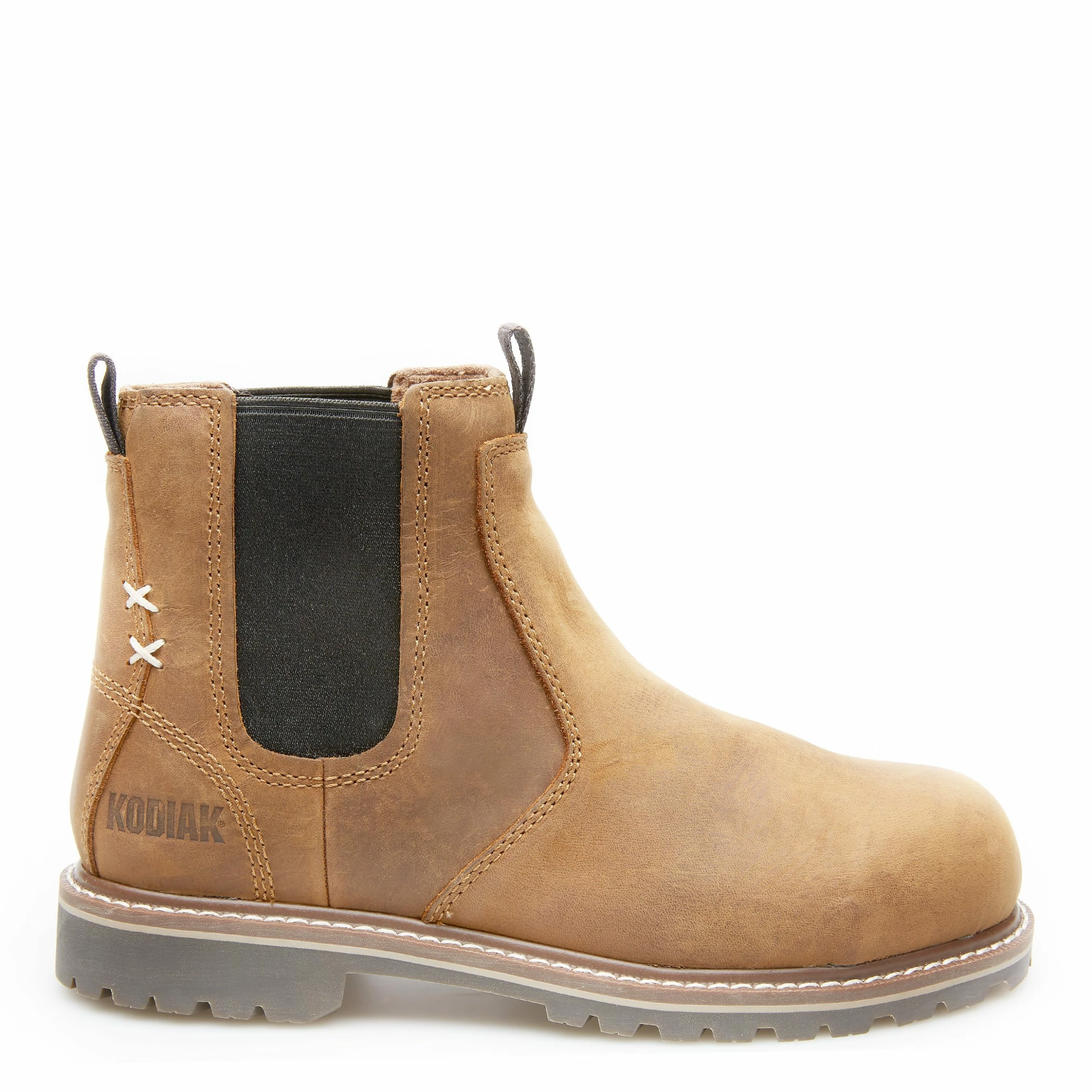 Pull-on ease, Chelsea boot style and work boot protection—the perfect combo for taking on the job. Kodiak used their most premium, hardest-wearing heritage full grain leather that will develop a rich patina with use. To help keep you safe, a composite toe and composite plate help protect you from impacts and sharp objects under foot.