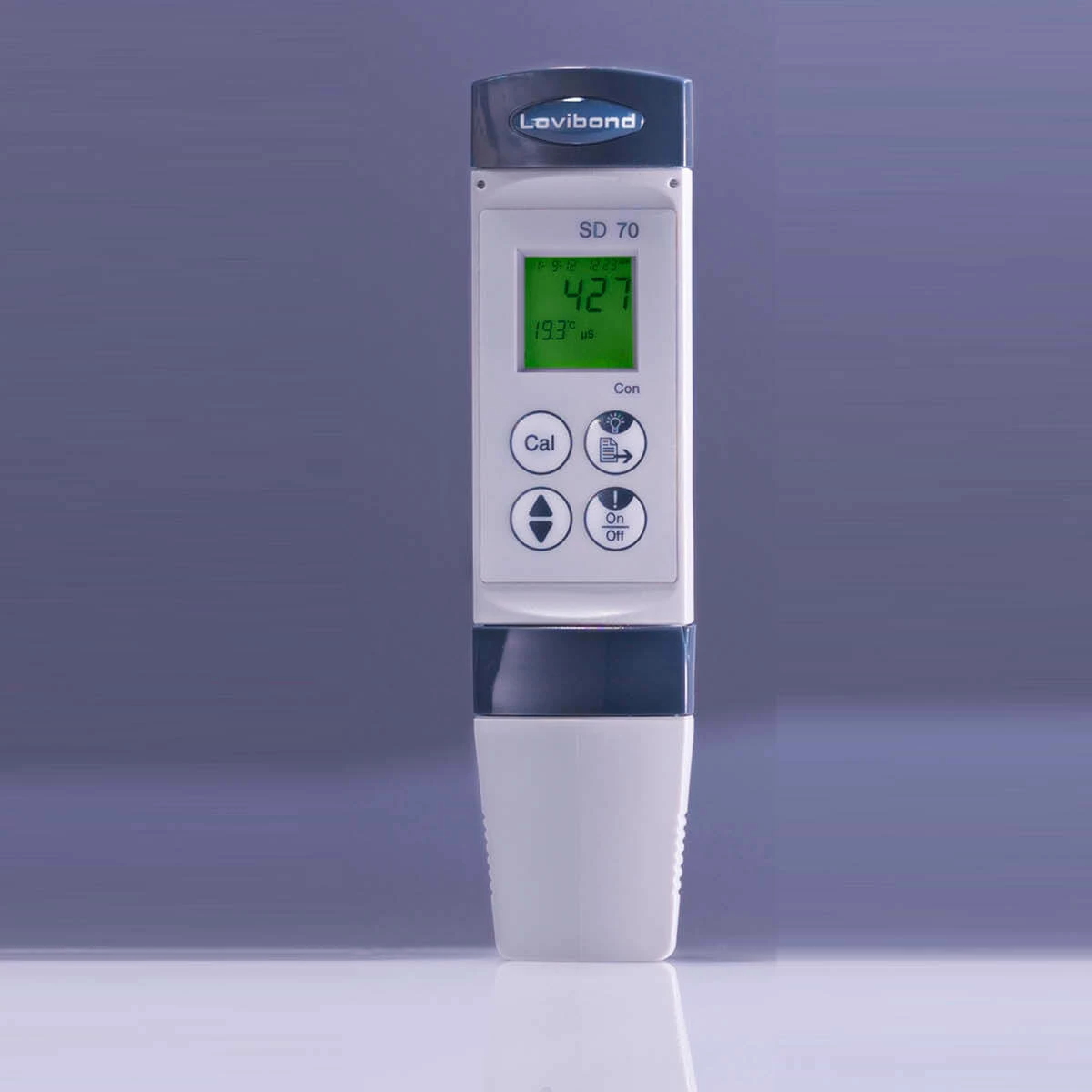 The Lovibond SD 70 Conductivity tester is an easy-to-use, hand-held instruments with a robust housing and fully waterproof (IP67) casing. This tester is the ideal solution for in-situ testing in environmental, industrial or pool & spa applications.The intuitive scroll-bar functionality and backlit display enable the easy measurement and simultaneous display of result, temperature, date/time and other measurement details.