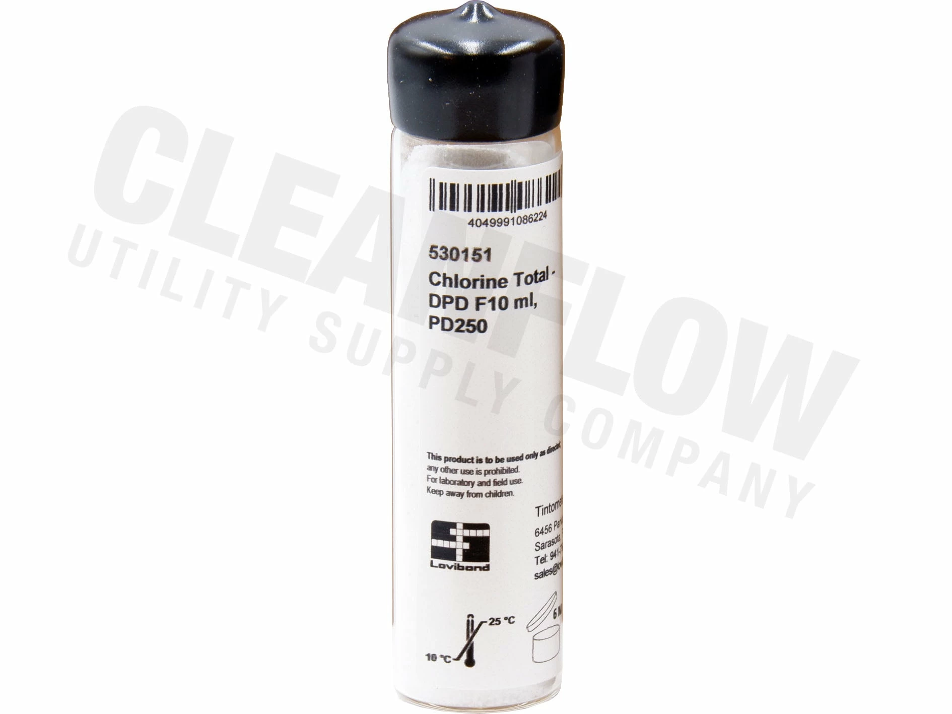 The Vario PD250 Total Chlorine Refill Vial can be used with Vario PD250 dispensers and Hach Swiftest dispensers. One click gives the exact amount of DPD chlorine reagent required for a 10 ml sample.