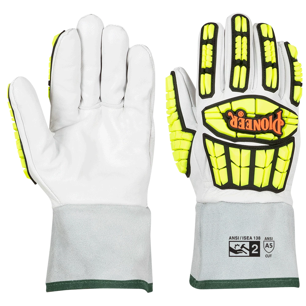 Material – With a durable and breathable goatskin grain leather shell, the Goatskin Gauntlet TPR Impact-Resistant Gloves, Cut Level A5 conform to your hands for long hours of comfort and protection