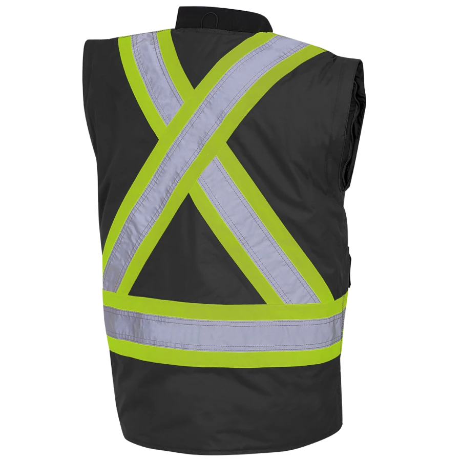 Sleeves can be removed and the jacket can be worn as an insulated, high visibility vest.