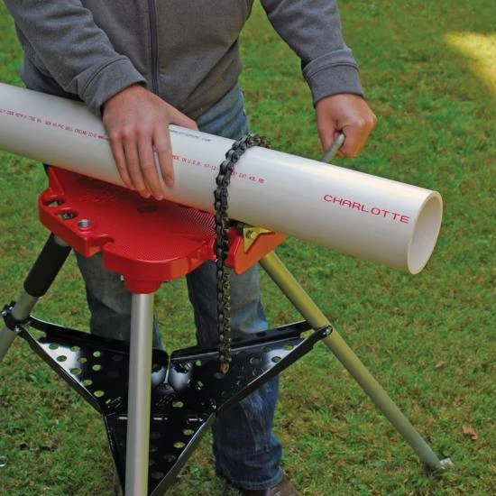 REED Tripod Pipe Vises are among the strongest pipe vises available. They are manufactured with heavy gauge steel, overlapping hinges, and an adjustable tray clamp to keep the lower tray assembly and entire portable workbench tight, even after many hours of use. R450+ vise has a pipe capacity of 1/8″ to 6″ pipes.