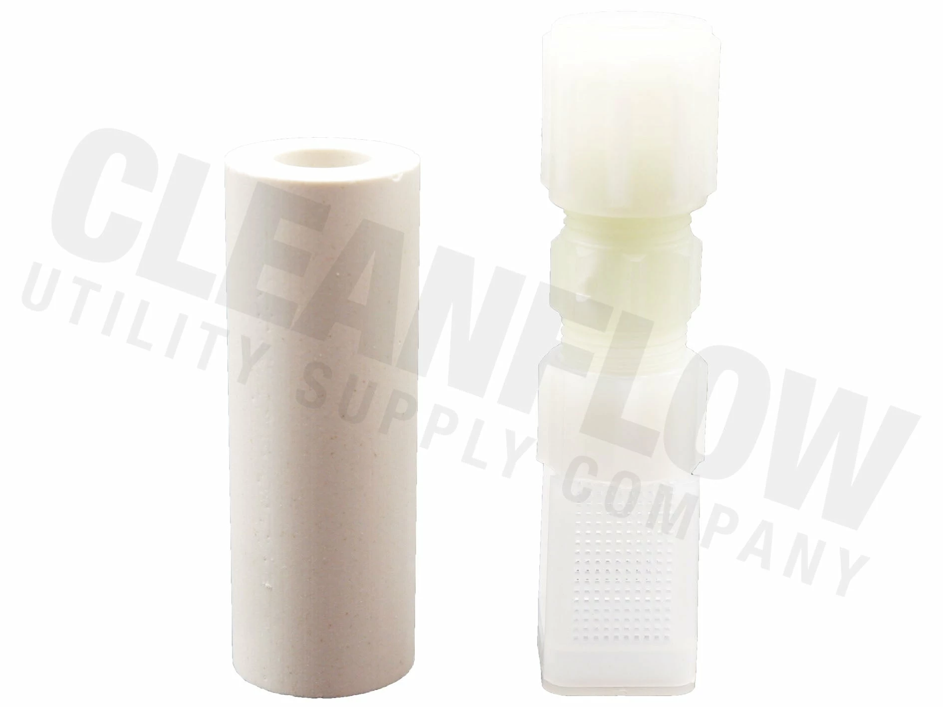 Pulsatron Pulsafeeder Foot Valves are available to fit two chemical tubing sizes – 3/8″ OD tubing and 1/2″ OD tubing. Foot valves are supplies with a ceramic weight.