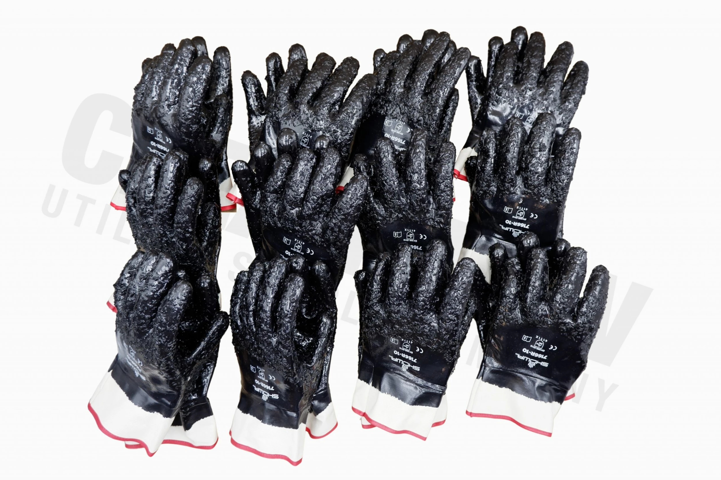 Combining a rough grip and full nitrile coating with a reinforced safety cuff, the SHOWA 7166R provides an excellent barrier to oil and grease.