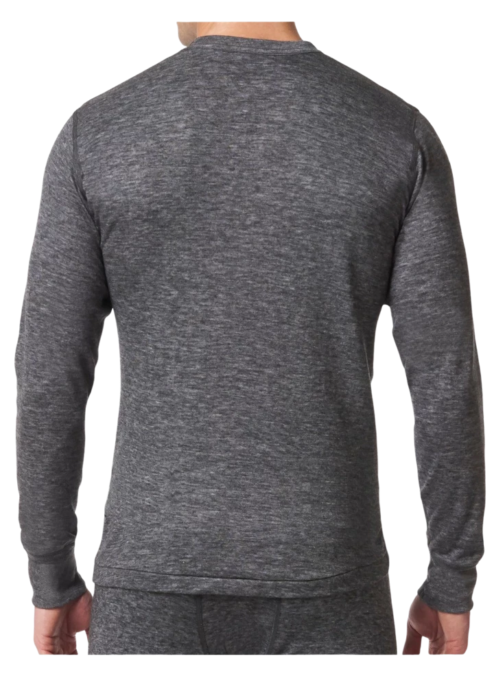 This wool blend shirt is made from a unique 2 layer jersey knit fabric that offers you the ultimate in warmth and comfort. The inner layer is a blend of 50% cotton and 50% polyester for absorbency and softness next to the skin. The outer layer is a blend of 50% merino wool and 50% polyester that offers you warmth and strength. The space between layers acts as an insulating layer trapping warm air from your body. The combination gives you one of the warmest garments you can put next to your skin.