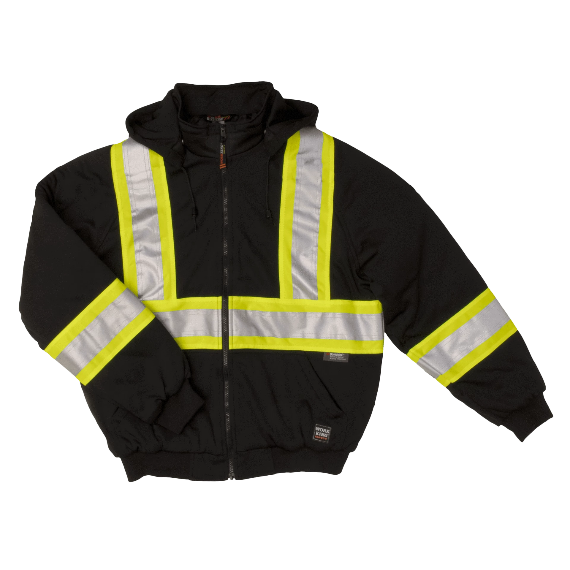 Work King S474 Black Zipper Front Insulated Hi Vis Safety Hoodies are available in sizes X-Small to 5XL.