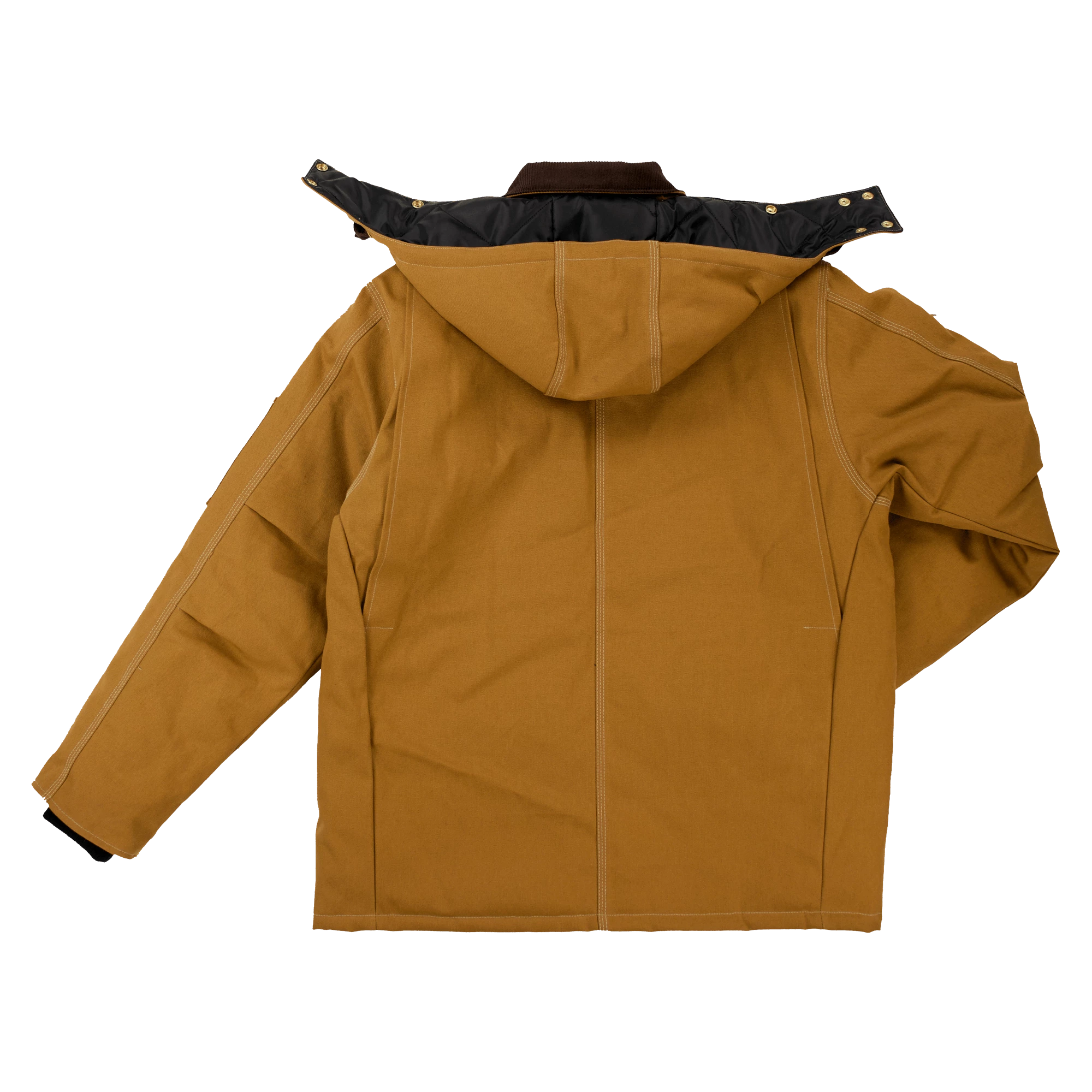 - Detachable hood with chin guard extension and adjustable snaps