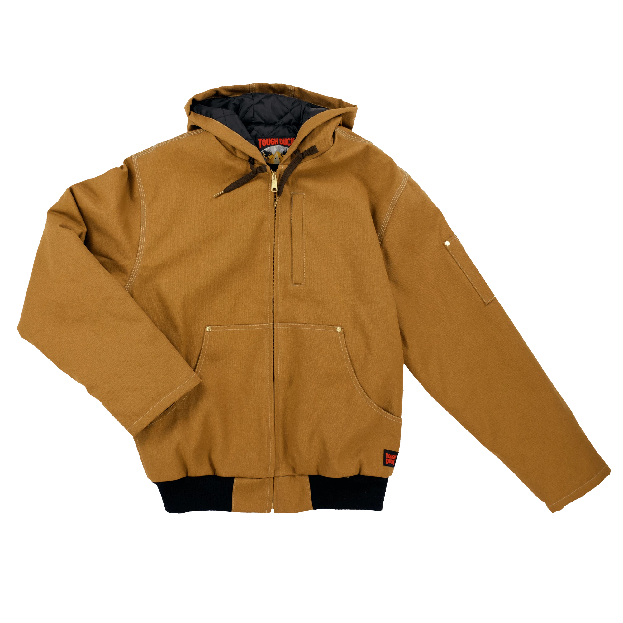 Tough Duck’s premium duck bomber jacket features their unique brand of work-to-play styling but doesn’t forget its roots as tough workwear. Triple-stitching and brass rivets at stress points add reinforcement where you need it most while the quilted lining and hood give this bomber the edge on those cold mornings.