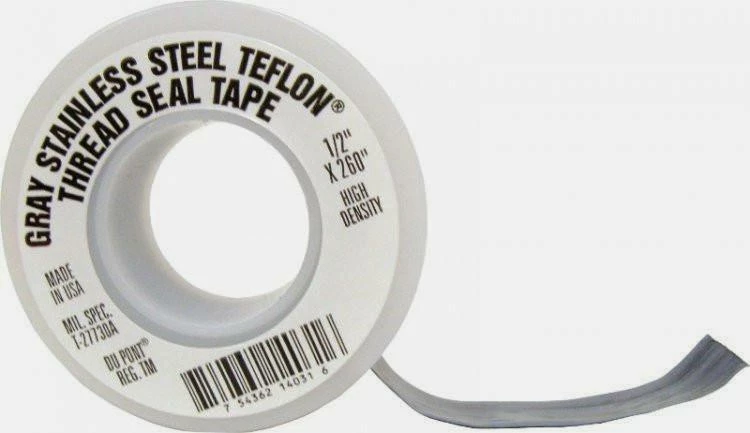 Gray Stainless Steel PTFE Thread Seal Teflon Tape is a unique thread sealing tape which prevents stainless steel and aluminum fittings from galling or seizing during assembly or disassembly. The tape is impregnated with nickel powder, which acts like bearing plates, keeping the surface of the male and female threads apart.